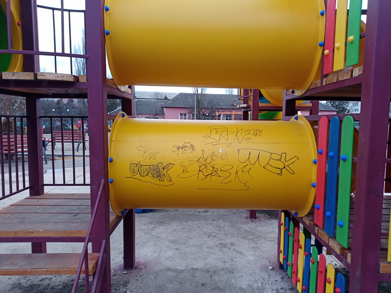 Пустые пластиковые бутылки, шелуха от семечек, упаковки от чипсов и сухариков – это то, что остается по вечерам после мальчишек и девчонок, коротающих время на стадионе. Сразу небольшая ремарка: по всей его территории – урны. Почему мусор в них не выбрасывают? Вопрос риторический. Попала под раздачу и игровая зона для малышей. Теперь надписи «уродуют» детский городок. Многие пластиковые горки уже успели пройти и своеобразный «краш-тест». Нередко видишь, как подростки задорно скачут по городку, предназначенному для детей младшего возраста. Естественно, горки, карусели и качели попросту не выдерживают такой нагрузки и быстро выходят из строя. На что некоторые взрослые тут же парируют: «Это качество изделий плохое. Не то что раньше. Веками стояло!». А потом появляются анекдоты, типа: «Деревянные игрушки, прибитые к полу». Какие заслужили…