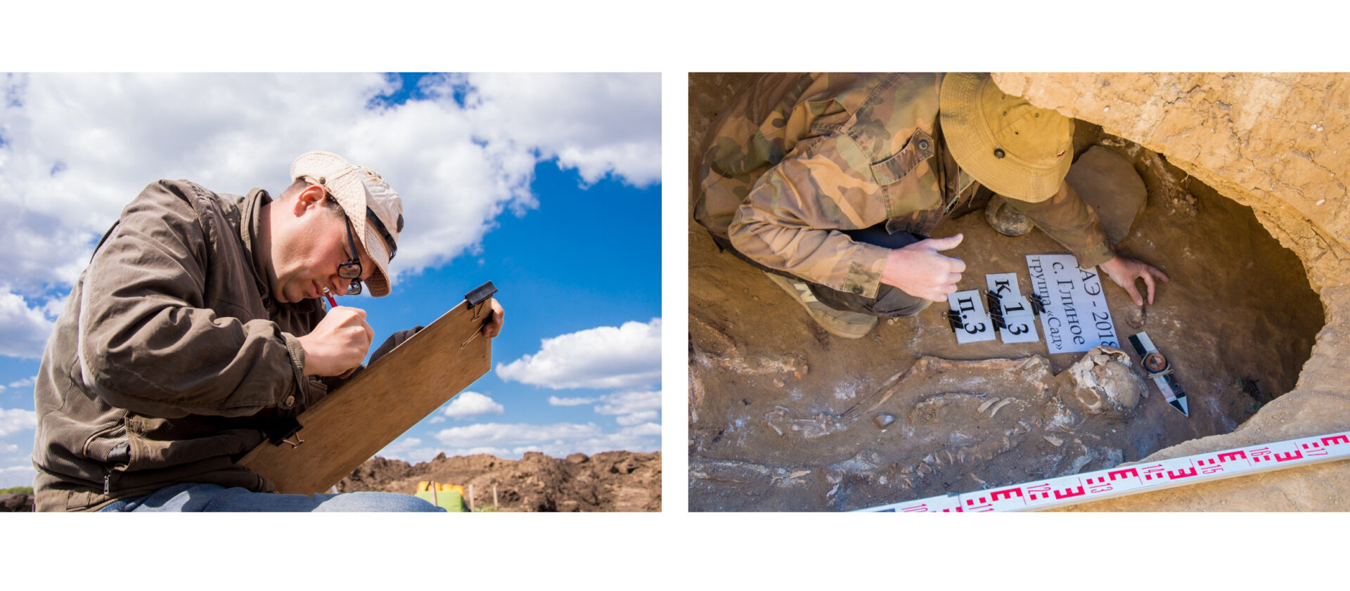 В полевом сезоне 2021 года в центре внимания археологов оказался курган №3 группы «Рыбхоз». По сути, это даже не отдельный памятник, а целый некрополь, действовавший на протяжении тысячелетий. Судите сами: наиболее ранние погребения относятся к началу бронзового века (последняя треть четвертого тысячелетия до нашей эры), а наиболее поздние – к Новому времени.