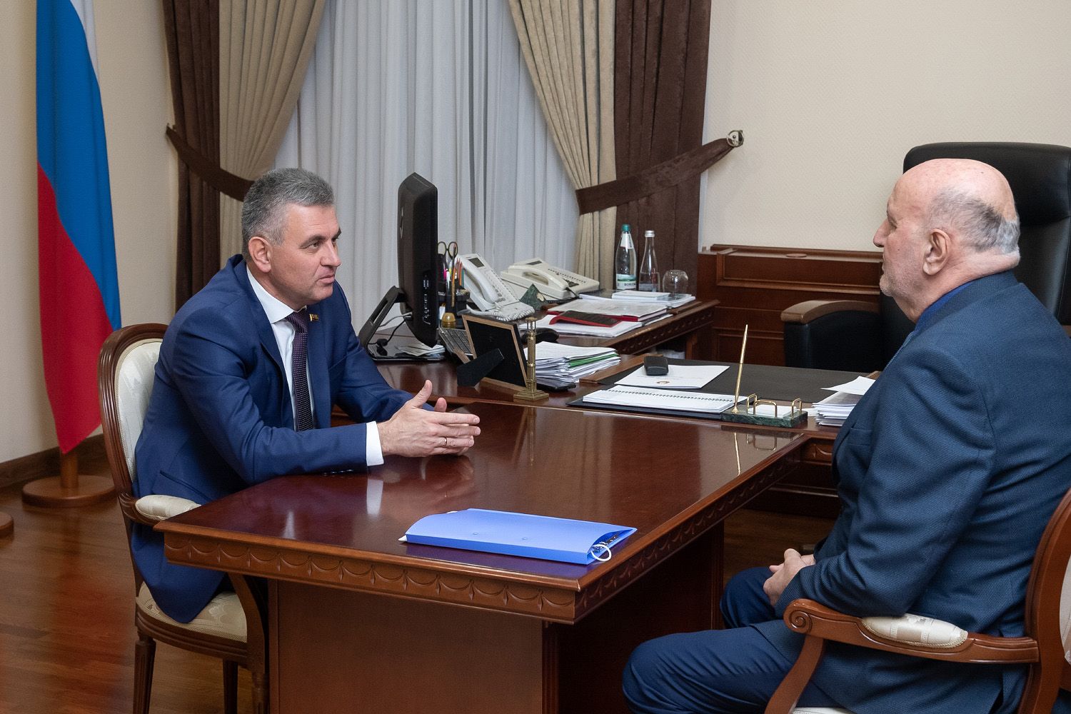 Цель встречи – обсуждение перспективы продолжения деятельности Анатолия Гурецкого в нынешней должности. Глава государства отметил, что считает работу действующего прокурора республики эффективной, и сообщил, что подписал распоряжение о представлении его кандидатуры на очередной период. Документы направлены на рассмотрение в Верховный Совет. Анатолий Гурецкий занимает должность прокурора ПМР с 17 декабря 2016 года.