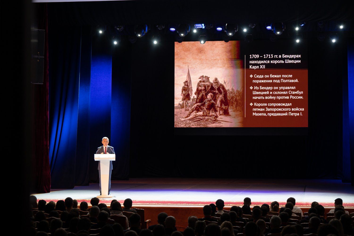 «Историю важно знать, ведь в ней не только прошлое. Если грамотно и честно изучать историю, то можно найти в ней день сегодняшний и даже завтрашний. Избитая фраза – без истории нет будущего. Но это истина. Тот, кто не знает свою историю, не имеет права на будущее. История – это не только даты и события. История – это то, что формирует наши ценности: языки, литературу, традиции, обычаи. А эти ценности и формируют народ, в частности приднестровский. Вот как здесь без истории? Не будешь знать историю – не будешь понимать приднестровский народ. Суть его не будешь понимать. А без понимания сути приднестровского народа не будешь понимать и становление приднестровской государственности, правовых основ этой государственности. У меня очень сложная задача. То, что я вам расскажу, описано в восьми томах энциклопедии, которая сейчас издается», – отметил во вступительном слове Вадим Красносельский.