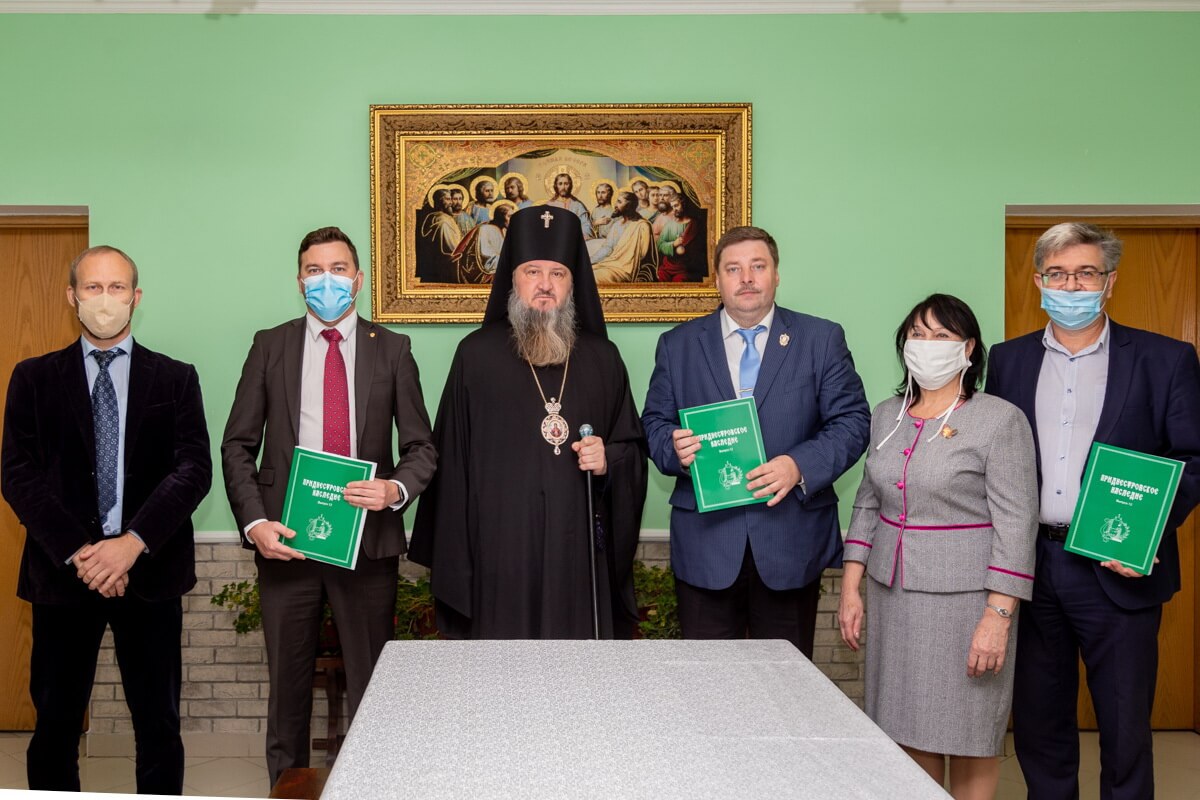 «Приднестровское наследие» вот уже 12 лет выходит раз в год под эгидой Центра исследования культурно-исторического и духовного наследия Приднестровья, при поддержке Тираспольско-Дубоссарской епархии и Тираспольского межрегионального университета. На этот раз редколлегия посвятила его 30-летию ПМР и 75-летию Победы в Великой Отечественной войне. У нынешнего выпуска непростая история: он был готов уже весной этого года, однако из-за коронавирусных реалий его публикацию решили перенести на осень 2020-го. Да и сейчас презентация альманаха состоялась в узком кругу – это уже требования всеобщего карантина.