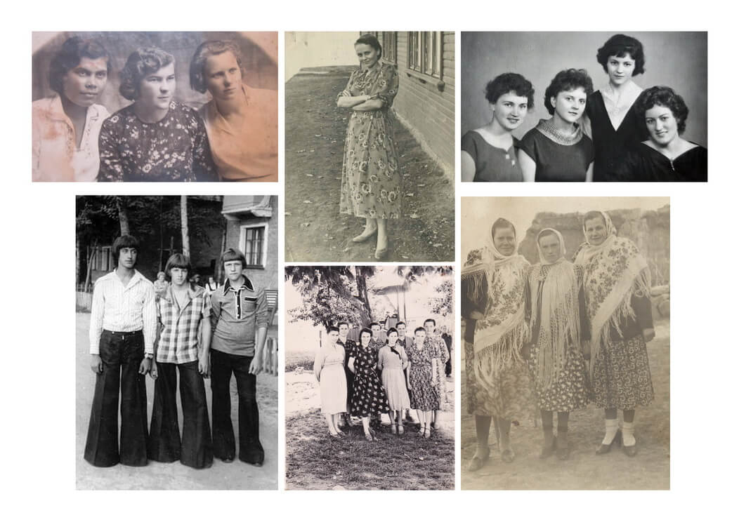 Особенно это было важно, когда на широкой долине в конце села собирался «жок» – вечер танцев. А в тёплое время года это было каждое воскресенье, под гармошку или духовой оркестр. Идут девчонки на танцы – платья-шестиклинки из простенького штапеля подчёркивают тонкую талию, по ветру развеваются, волосы уложены волной, как у артисток из кино, а на ногах – парусиновые туфли, отмытые зубным порошком добела, и носочки с зелёной каёмкой – красота! Это летний вариант. В холодное время года одежда другая – пиджак или плюшевая шубка, ботики (резиновые ботинки, куда помещались туфли на высоких каблуках) и обязательно – красивые большие платки с бахромой. Такая была мода.
