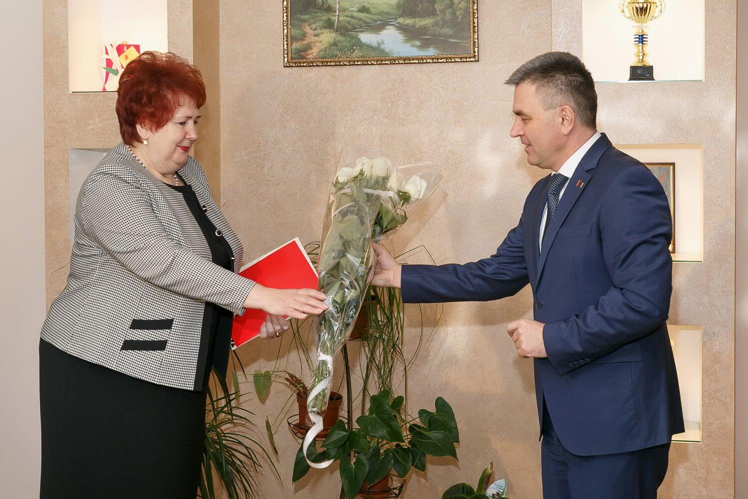 Глава государства вручил имениннице цветы и приветственный адрес, в котором отмечается, что опыт, замечательные профессиональные и человеческие качества Елены Куличенко, а также умение взаимодействовать с людьми и находить правильное решение в любой ситуации являются безусловной гарантией эффективной работы на посту министра по социальной защите и труду.