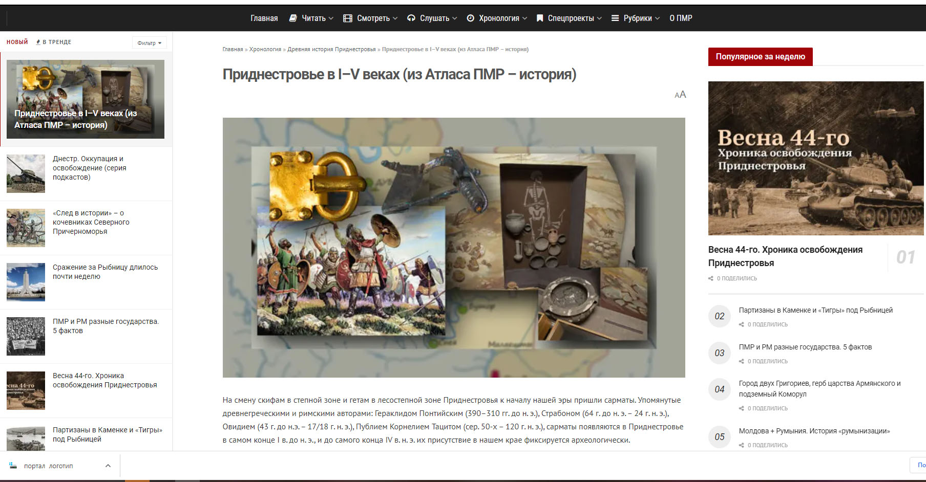 Какой исторический контент о Приднестровье будет самым интересным? На портале собраны биографии выдающихся исторических личностей, имеющих непосредственное отношение к Приднестровью. Большое внимание в рамках проекта уделяется и многогранному историко-культурному и духовному наследию края. «Наш проект постоянно развивается, появляются новые разделы, спецпроекты и тематические подборки, обновляется функционал сайта, – отметили разработчики. – Надеемся, что здесь, окунувшись в прошлое приднестровской земли, вы найдете для себя много интересного и познавательного».