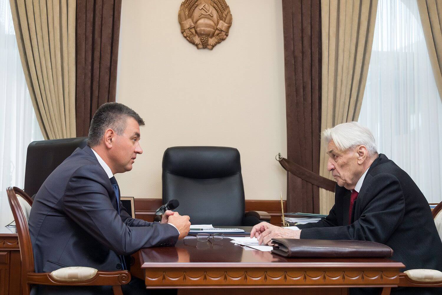 В ходе беседы в президентском кабинете Вадим Красносельский обсудил с Виталием Глебовым деятельность научно-исследовательских лабораторий и Высшего консультативного совета по науке и технике (ВКСНТ) Приднестровского государственного университета им. Т. Г. Шевченко.