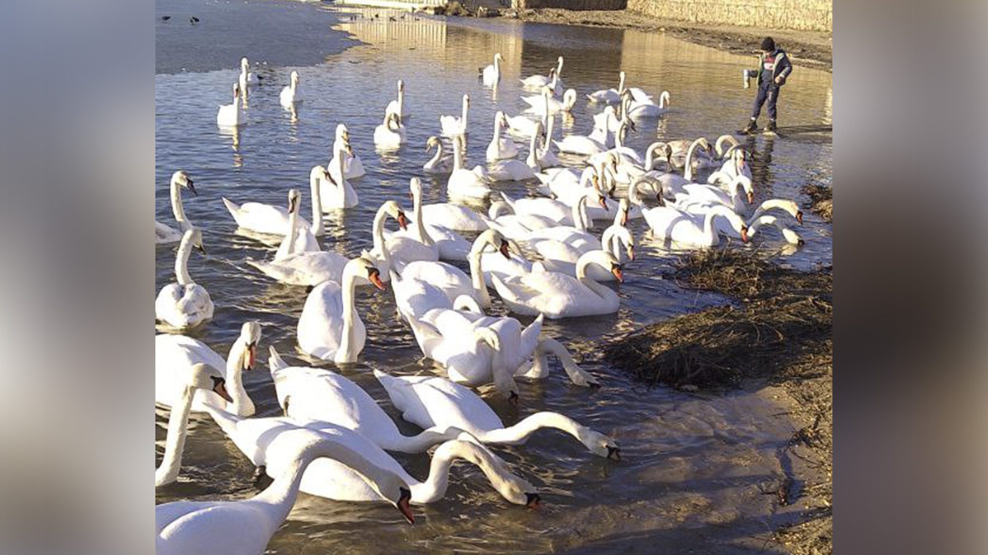 На берегу Дубоссарского водохранилища сейчас аншлаг: здесь поселилась огромная стая лебедей.