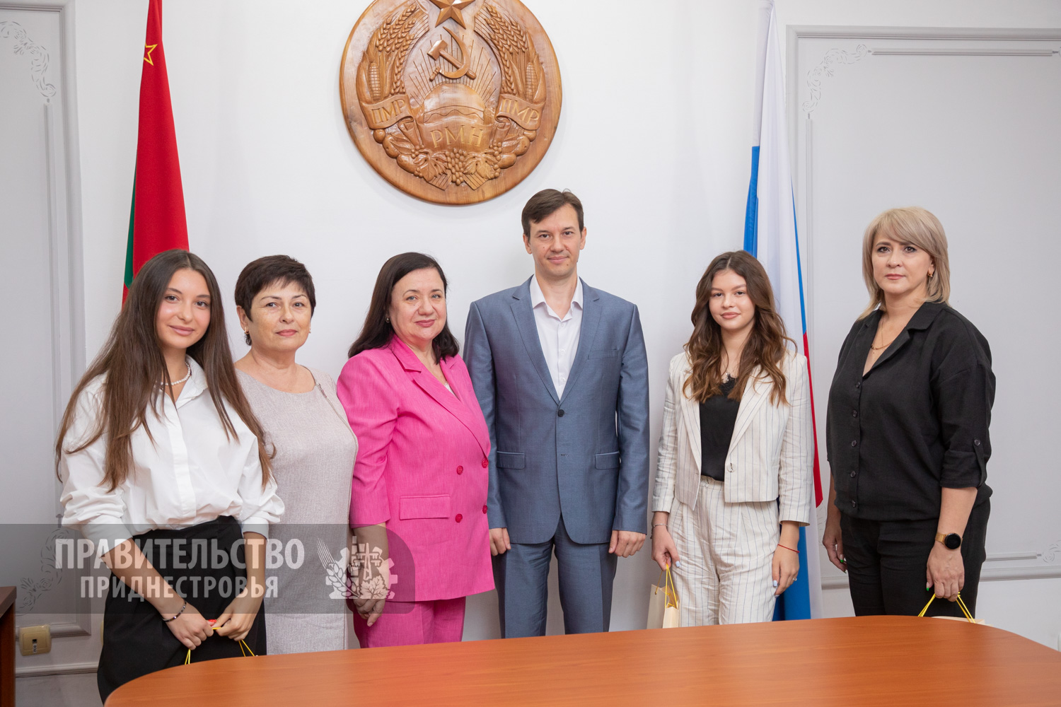 В завершение встречи Алексей Цуркан вручил Дарье и Арине, а также педагогам памятные подарки от имени Председателя Правительства и пожелал успехов в новых стартах.