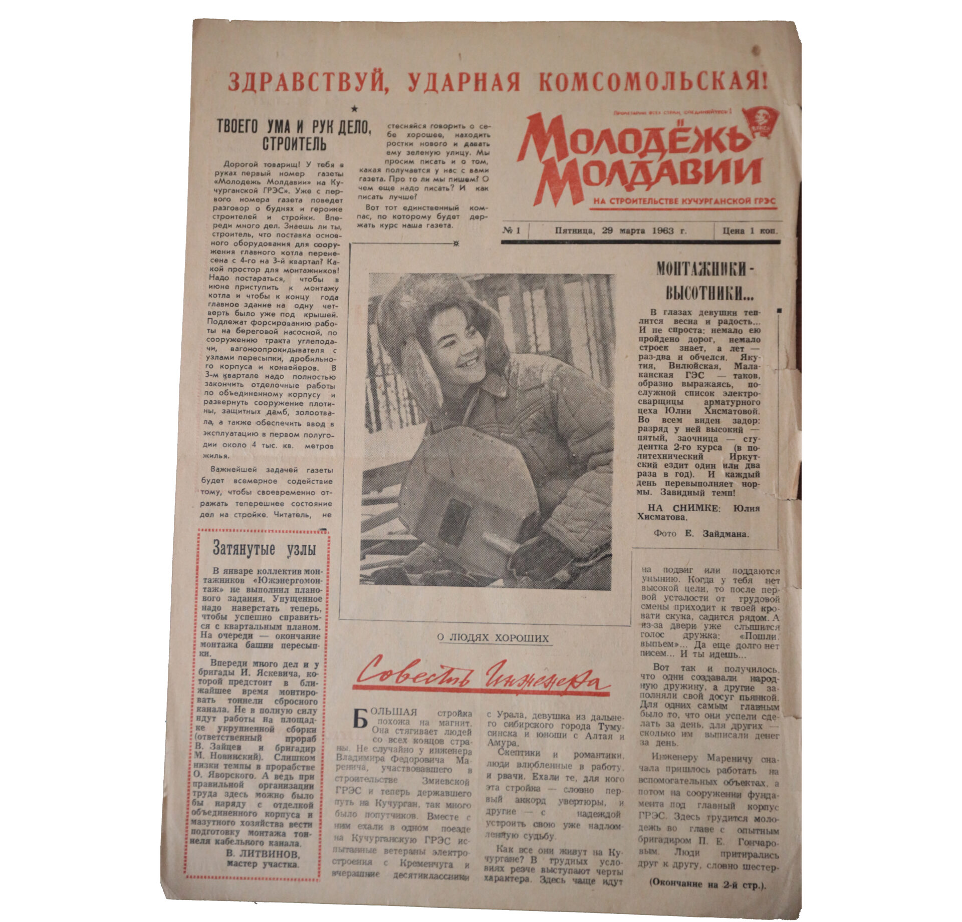 Член совета ветеранов войны и труда г. Днестровска Алексей Бабин сохранил в личной коллекции раритеты 1963-64 годов и подарил их музею. Несколько номеров газеты «Молодежь Молдавии на строительстве Кучурганской ГРЭС», в том числе первый номер издания. Газета начинается с обращения к читателю. «Дорогой товарищ! У тебя в руках первый номер газеты. Уже с этого номера мы ведем разговор о буднях и героизме строителей. Читатель, не стесняйся говорить о себе хорошее, находить ростки нового и давать ему зеленую улицу». Читая пожелтевшие от времени листы, словно ощущаешь дыхание стройки, энергию людей того времени.