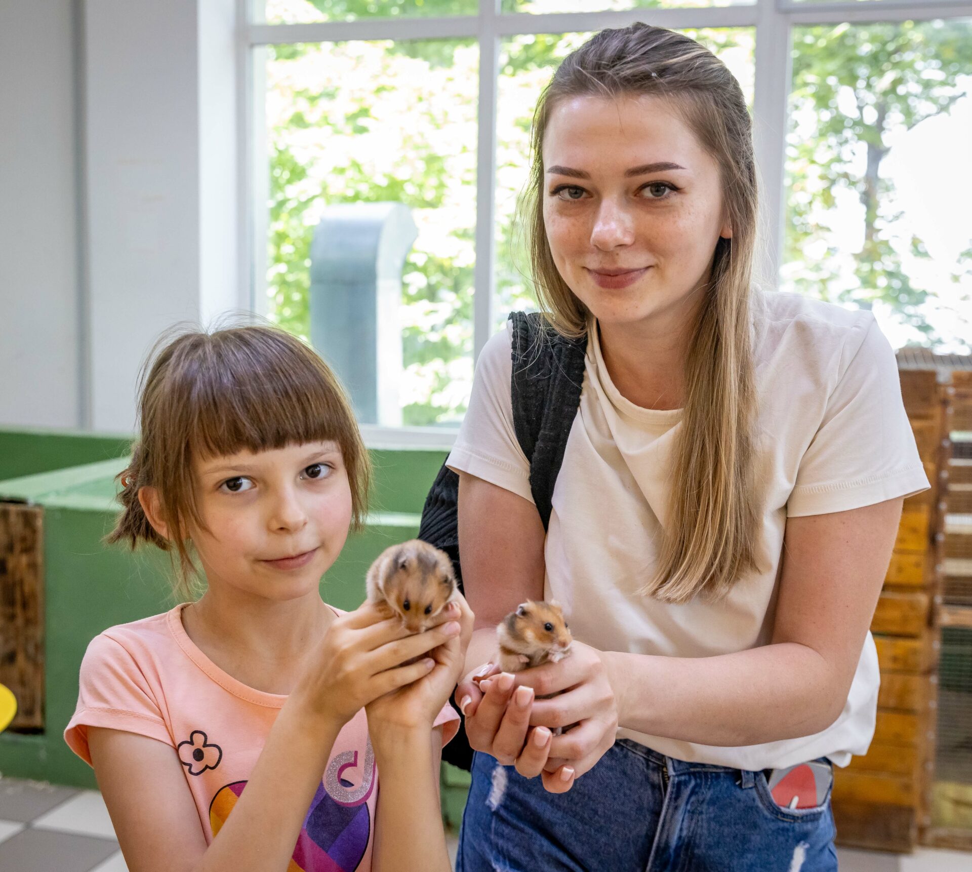 Что касается временной прописки, Виталий рассказал: «Кто-то пострадал на улице. Нам их принесли. Кого-то сами подбираем. Мы их лечим, выхаживаем и выпускаем на волю. Если это невозможно, то животное остаётся у нас. Например, один из воронов – претендент на отпуск в дикую природу. Он сам ест. Но пока не может самостоятельно орехи расклевать. Месяца три-четыре побудет у нас – и на волю. Когда нам его отдали, он совсем маленький был. А сейчас кричит постоянно. Хочет, чтобы ему в клюв что-то положили. Мы хотели его приручить, но потом решили, когда оклемается, выпустить на свободу. В вольной жизни он, конечно, окрепнет, найдёт себе пару. Станет мощной, сильной птицей. Другой же ворон останется у нас навсегда. Его подобрали в очень плохом состоянии: он выпал из гнезда, и его чуть было не загрызли собаки. Птицу выходили, но на воле она не выживет», – рассказал о судьбе двух постояльцев зоопарка Виталий. Также не видать родной среды и воробьиному сычику. Когда его принесли в зоопарк, голова птицы болталась из стороны в сторону, как у игрушечной собачки, которые любят ставить на «торпеды» машин некоторые водители. Есть и ушастая сова, не подверженная адаптации к вольной жизни, и голубь с полностью раздробленным крылом, который тоже не жилец вне пределов зоопарка. Кстати, одну из четырёх ушастых сов накануне нашего посещения контактного зоопарка сотрудники выпустили на волю. С начала лета голубей уже было около 20. В этом году принесли голубёнка размером 3 см. Выкормили, но когда повзрослел, улетать не захотел. Вот ещё один голубь с подбитым крылом. Когда позволяет погода, открываем окна. Птицы, которые пришли в нормальное состояние, сразу же улетают. В свою очередь залетают все, кто хочет – ласточки, воробьи. Поедят у нас – и в родную стихию», – рассказал собеседник.