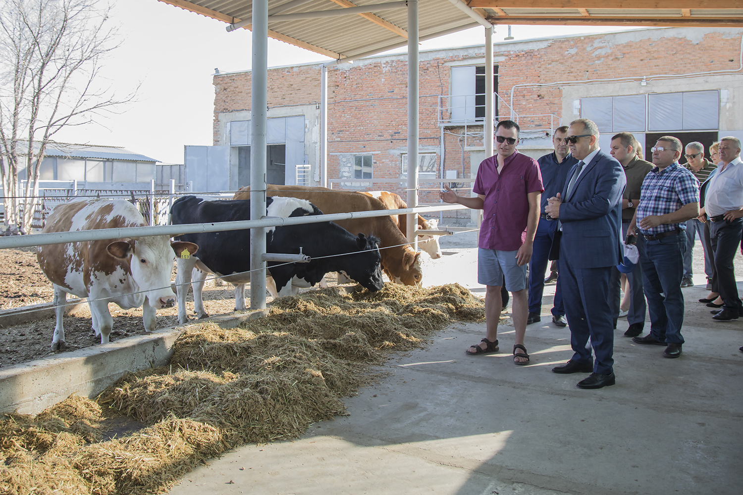 Знакомство с сельхозсектором региона началось с посещения фермы, которая появилась посреди поля буквально за несколько лет. Ее владелец Андрей Кизил рассказал, что планируется содержание порядка 500 голов крупного рогатого скота, молочного стада в количестве 200 коров. Первая закупка зарубежных нетелей в рамках госпрограммы была небольшой – 20 животных, позже приобрели полугодовалых телочек. На КФХ осваивают промышленное разведение племенных животных, строго соблюдая чистоту породы. В стаде – симменталы, на данный момент это одна из наиболее продуктивных пород. Сегодня на ферме обитают порядка 260 голов. Ежедневно молочное стадо дает тонну молока. Для того чтобы выйти на безубыточный уровень и нормально работать, говорит Андрей Кизил, нужно производить от 2 тонн молока каждый день. К концу года ожидается рост удоев до 1,6 тонны. Все молоко сдают на переработку Тираспольскому молочному комбинату, за это КФХ получает дотации – 1 рубль за 1 литр.