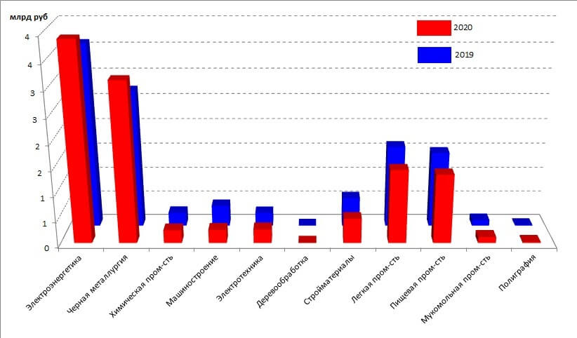 По объемам производства традиционно ведут электроэнергетика (4 021,5 млн руб. в текущих ценах, +7,7% в сопоставимых ценах по сравнению с прошлым годом. В количественном выражении это 5192059 тыс. кВт/ч, что на 10% больше, чем в 2019-м) и черная металлургия (3 512 млн руб., +15,8%. В количественном выражении наибольший рост продемонстрировали выпуск фасонного профиля – в 8,4 раза, катанки (+48,2%) и выплавка стали (+18,6%). Главной причиной роста специалисты считают низкий уровень производства в 2019-м.