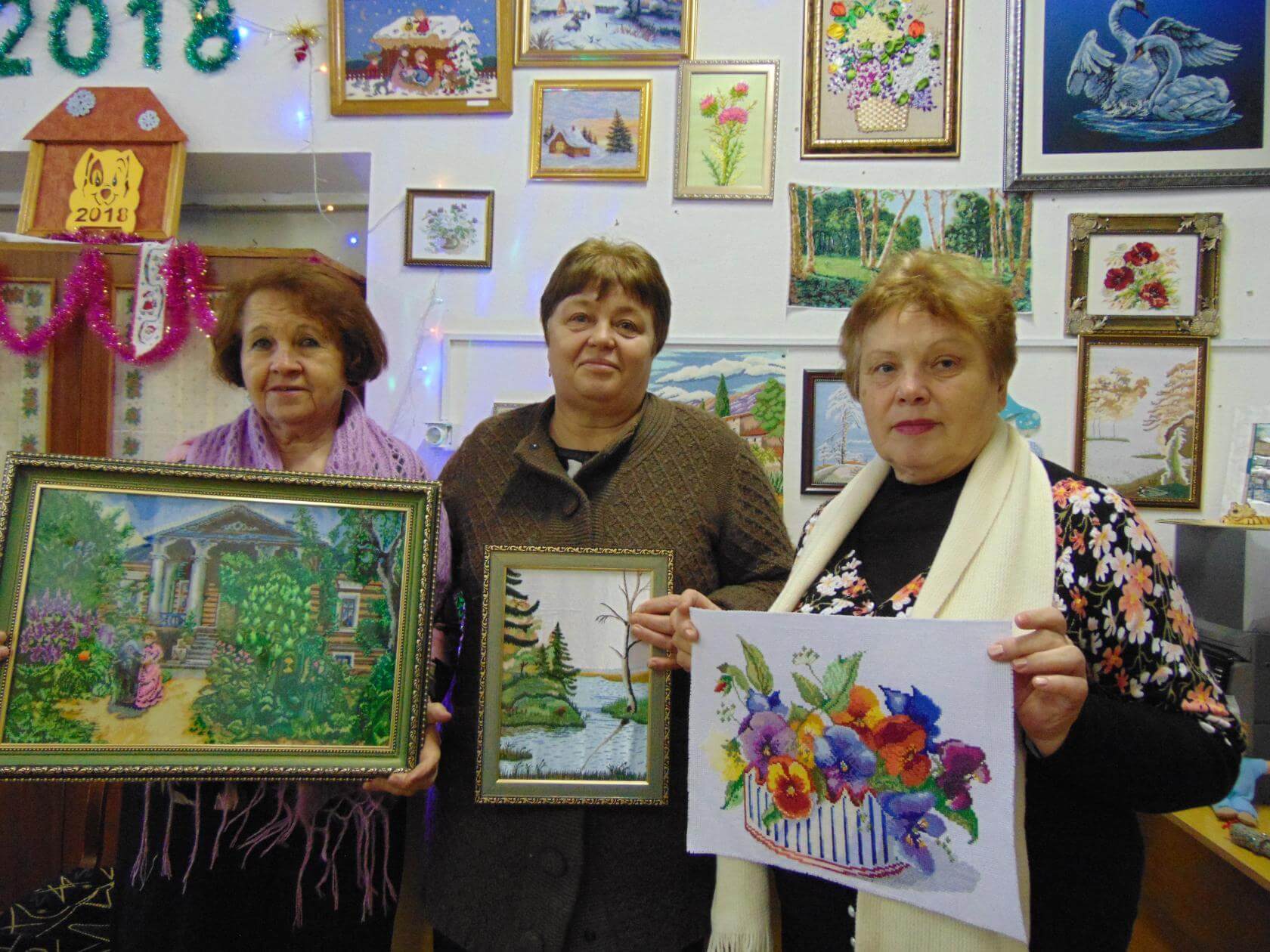Результат их трудов праведных присутствующие на итоговом собрании члены и гости клуба смогли увидеть на выставке изделий, изготовленных за последний год. Красота – глаз не отвести, и во всем – труд и великое терпение рукодельниц: сколько тысяч стежков и крестиков нужно вышить, сколько сотен бисеринок нужно уложить на полотно, чтобы получилась законченная картина! Сколько петель связать, чтобы получилась ажурная шаль или красивый пуловер! Тут же изделия из кукурузных покрывал (листьев, покрывающих кукурузный початок), соленого теста, многослойной бумаги, подручных материалов.