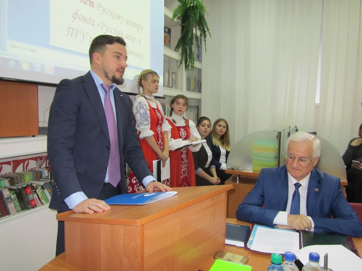 В ПГУ им. Т.Г. Шевченко прошло торжественное мероприятие, посвящённое 10-летию открытия Русского центра фонда «Русский мир». Круглый стол «Культурно-просветительская миссия центра «Русский мир» и его роль в продвижении ценностей Русского мира» собрал гостей – давних партнёров центра, коллег, представителей учебных заведений и общественных организаций. Всех тех, с кем Русский центр сотрудничает, проводит совместные просветительские и культурные мероприятия.