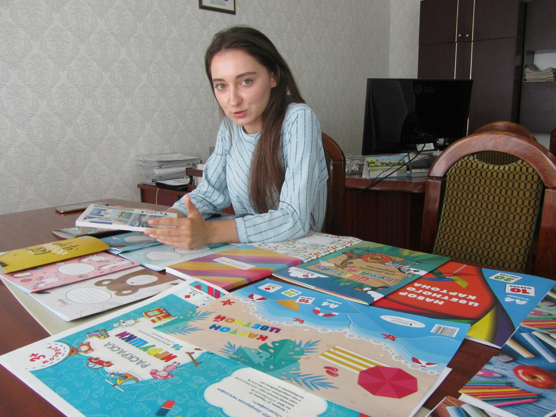 Дневники тоже претерпели изменения: их выпустили в мягком и жёстком переплётах с обновлёнными принтами. Альбомы для рисования и раскраски для самых маленьких также сделали более привлекательными. «Мы постарались вынести на обложку все конкурентные преимущества, чтобы наша продукция на прилавке рядом с аналогичным товаром от украинского или молдавского производителя смотрелась выигрышно. Мы хотим показать местную продукцию, донести до приднестровского потребителя наличие наших товаров. И преимущества у них тоже есть. В отличие от других производителей, у нашей продукции, например, в детских раскрасках, не тонкие листы, мы всё же базируемся на качестве», – рассказала менеджер по продажам Бендерской типографии Анастасия Местник (на фото). В скором времени обложки поменяют у блокнотов, ежедневников, прописей. Новый дизайн появится и у альбомов-раскрасок, математических диктантов и сувенирной продукции.