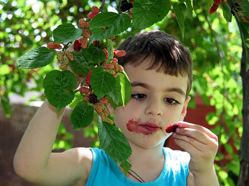 Это были низкорослые, раскидистые деревья, ветки которых обильно усеяны плодами. Собирать их было одно удовольствие. Не надо никуда залезать, подпрыгивать, изощряться. Просто стой под деревом и лопай. Что мы и делали. Когда пальцы слипались от сладости шелковицы и дышать становилось тяжело, выходили из «ягодного подполья» и представали во всей красе перед мамами. Чумазые и довольные. Ругать было бессмысленно. Витамины поглощали как-никак. А это куда важнее, чем какие-то там вещи.