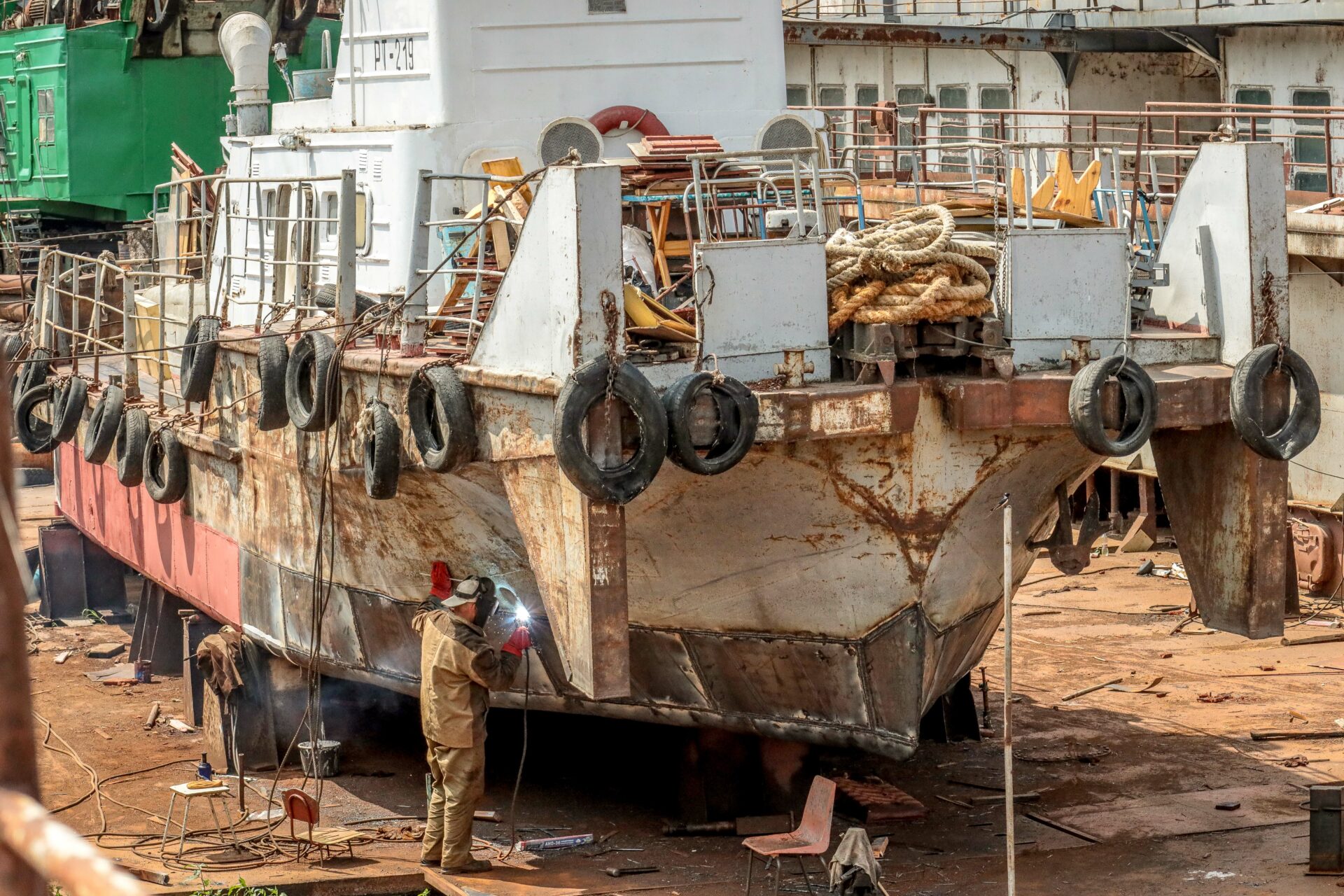 Когда-то в Бендерском речпорту, вкупе с коллективом судоремонтно-судостроительного завода и технического участка водного пути, работало порядка полутора тысяч человек. Сегодня не набирается и сорока. Судоремонтная бригада, которая при нашем приезде в речпорт «колдовала» над буксиром-толкачом РТ-219, состоит из двух человек – бригадира Сергея Поперешнюка и сварщика Валерия Жука. «Когда ставили судно в док 20 декабря прошлого года, в бригаде было четыре человека. После продолжительных праздников двое не вернулись, впоследствии уволились», – рассказал нам Сергей Поперешнюк.