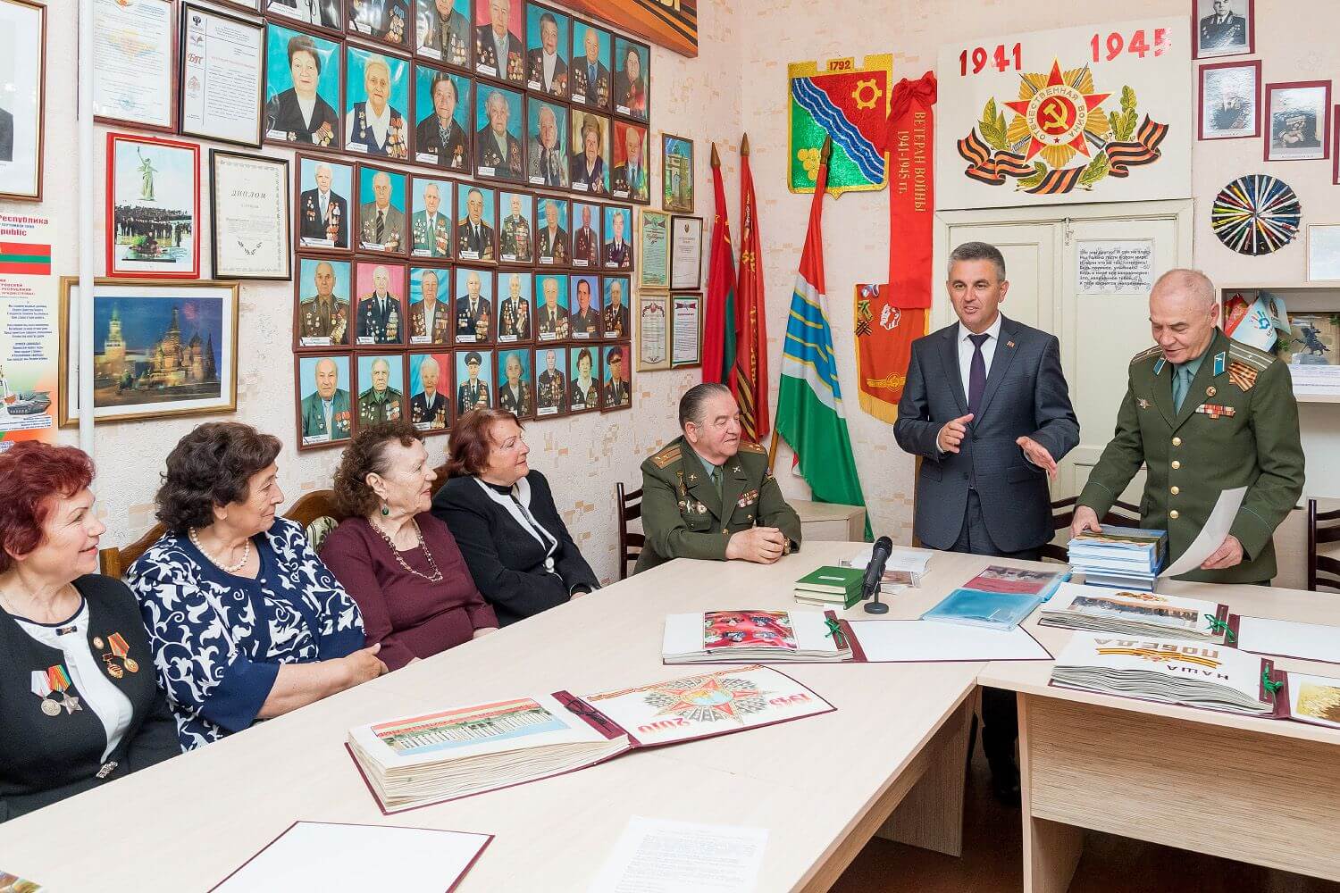 Главе государства рассказали, что работа по созданию Музея боевой славы была начата в 1999 году. На сегодняшний день, кроме большого количества фотоматериалов и других экспонатов, главной ценностью музейного фонда являются достоверные и подробные сведения о тираспольских ветеранах Великой Отечественной войны. В 94 книгах, объединенных в серию «Вечная память», описаны судьбы 940 участников Великой Отечественной войны. Это не печатные издания, а рукописи самих героев, рассказывающие от первого лица о боевом пути, жизни до и после войны. Вадим Красносельский назвал письменные воспоминания ветеранов большой ценностью, которую в обязательном порядке необходимо сберечь для будущих поколений. Президент рекомендовал сохранить копии рукописей и в электронном формате. «Таким образом можно сохранить историю 940 судеб, живой почерк ветеранов, личные фотографии», – цитирует Президента его пресс-служба. Вадим Красносельский предложил, чтобы биографические данные, отрывки воспоминаний и фотографии ветеранов в оцифрованном виде вошли в фотоальбом, выпустить который планируется к 75-летию Победы в Великой Отечественной войне.