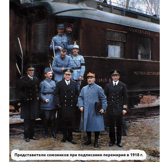 11 ноября 1918 года закончилась Первая мировая война. 105 лет назад в люксовом железнодорожном вагоне в Компьенском лесу близ Парижа между воюющими сторонами было заключено перемирие. Россия в этом не участвовала, ибо вышла из войны по Брестскому мирному договору от 3 марта того же года.