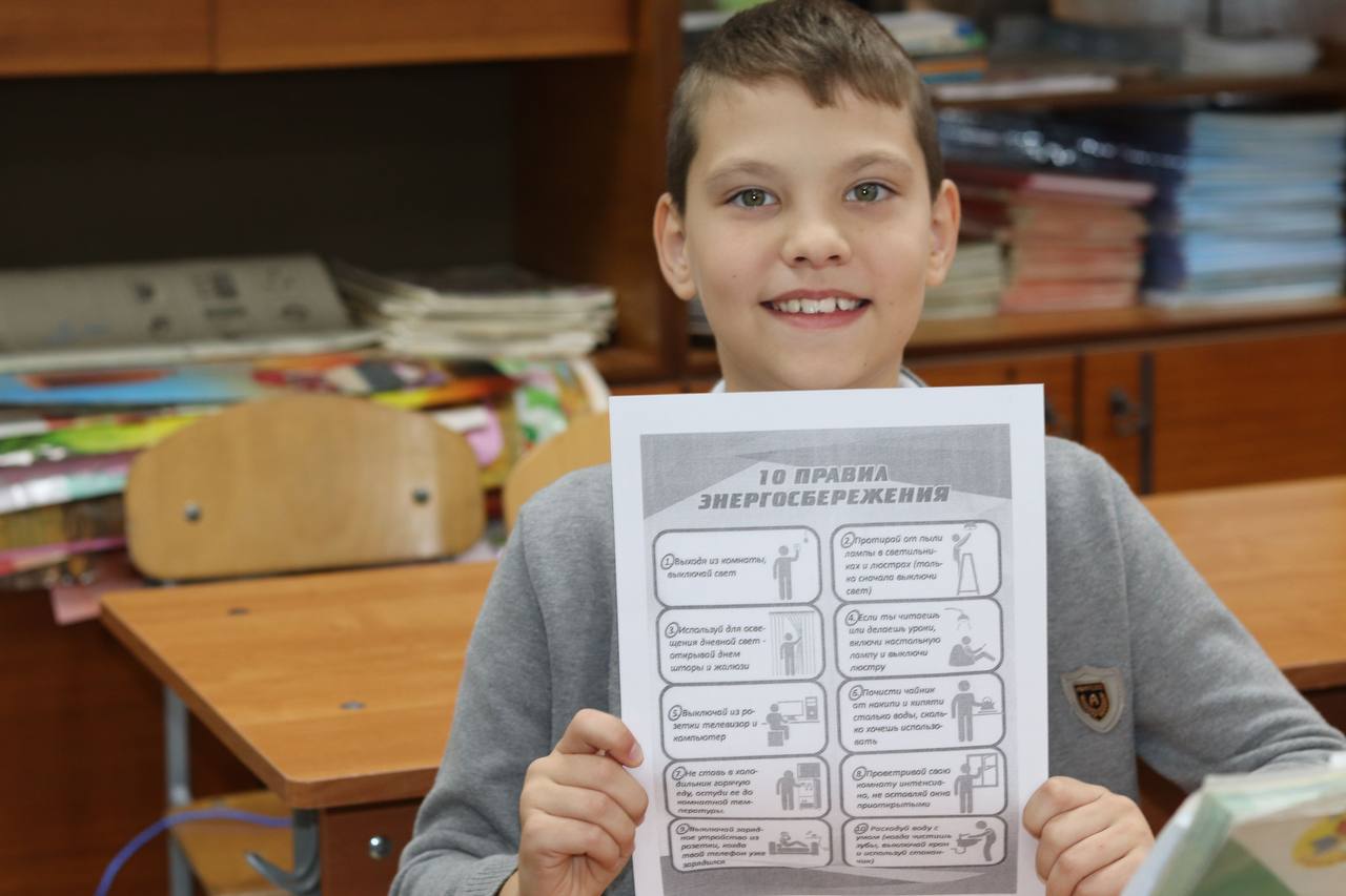 Руководитель экологического направления молодежного актива Александр Боногос провел со школьниками урок по энергосбережению.