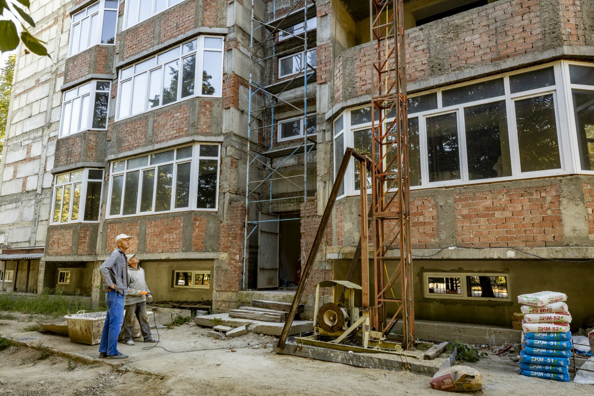 Сейчас, говорит он, рабочие заканчивают строительство семиэтажного двадцативосьмиквартирного дома в Бендерах по улице Московской. Вместе с Романом Валентиновичем мы побывали на этом объекте. Здание всё в лесах, а на его последнем этаже кипит ни на минуту не прекращающаяся работа. Один из строителей, Василий Здоровецкий, монтажник стальных железобетонных конструкций, а если надо, то и бетонщик, и каменщик (как сам говорит, «всю жизнь по строительству»), на наш вопрос о новом доме ответил так: «Хороший, ничего не скажешь. Отличная планировка. Просторно, в комнатах можно в футбол играть…». А прораб добавил: «Сейчас на завершение его строительства до конца года брошены все силы нашего управления».