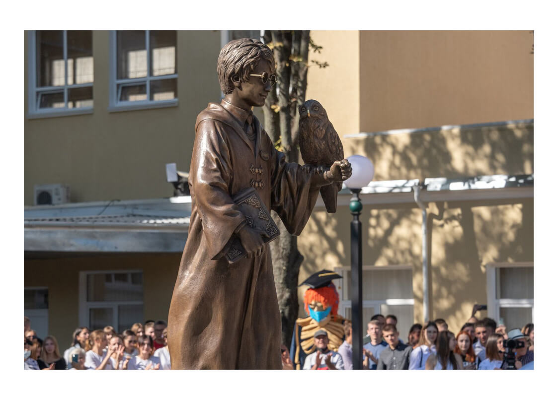 Теперь возле здания ПГУ есть статуя студента в образе популярного литературного персонажа Гарри Поттера. Конечно, нашлись те, кто посчитали задумку чересчур смелой и даже дерзкой. Но разве не такими следует быть студентам? «Памятник Гарри Поттеру» уже стал самой популярной локацией для фотографий, в местный фонтан кидают монетки, а сама новость о необычной скульптуре облетела зарубежные СМИ. Кроме Тирасполя, памятник Гарри Поттеру есть только в Лондоне. Любители этой книжной серии уже отметили, что персонаж, скорее всего, отображает период первой книги «Гарри Поттер и философский камень».