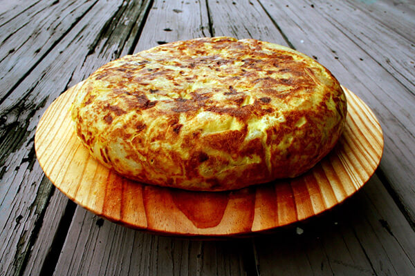 Итак, берем 6 порезанных на ломтики картофелин, одну большую луковицу и слегка поджариваем на сковородке на оливковом масле (можно и на подсолнечном). Сцеживаем масло через дуршлаг, добавляем пару ложек свежего масла в сковородку с высокими стенками и выкладываем картошку. Солим и перчим по вкусу. Взбиваем 6 яиц и заливаем картошку. Жарим до подрумянивания. Накрываем сковороду тарелкой, переворачиваем и возвращаем картошку в сковородку, чтобы поджарилась и другая сторона. Блюдо получается вкусным и в горячем, и в холодном виде. В Испании тортилью заказывают на дом, как и пиццу.