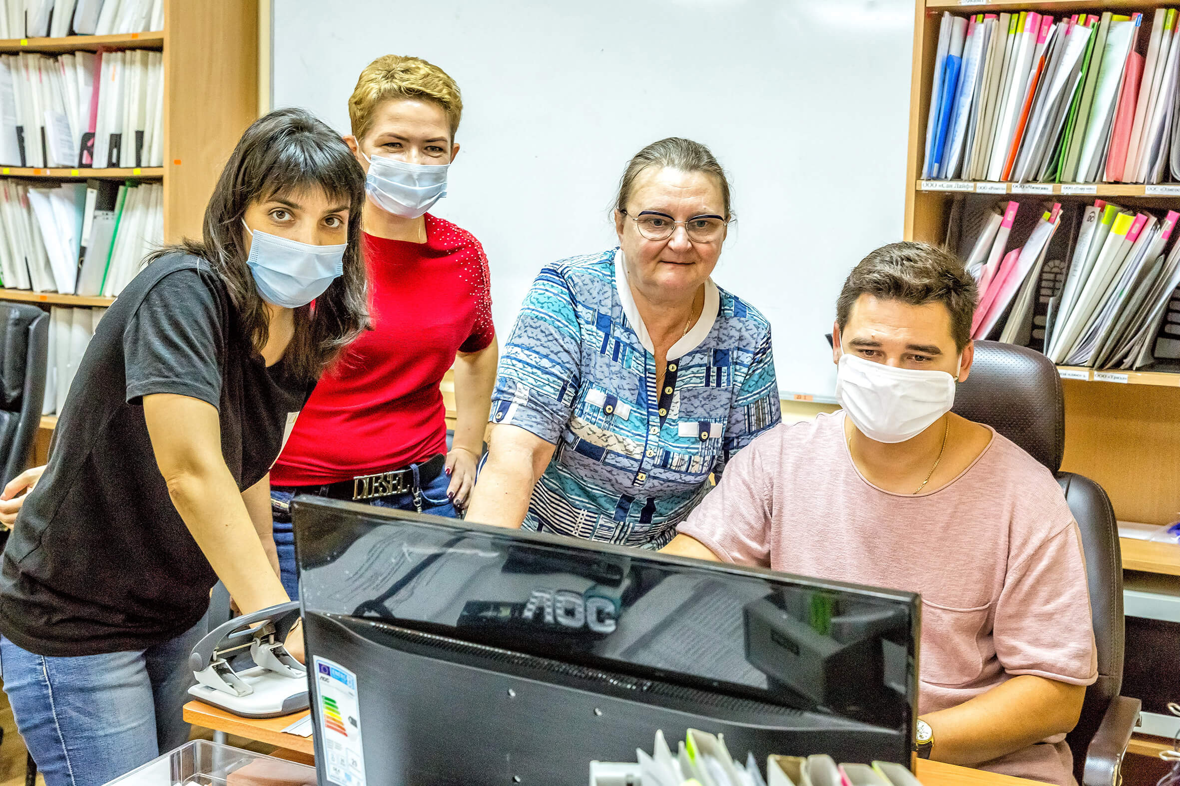 На фото генеральный директор О.Поликарпова вместе с бухгалтерами Е.Ляшковой, И.Давискиба и П.Недзельским.