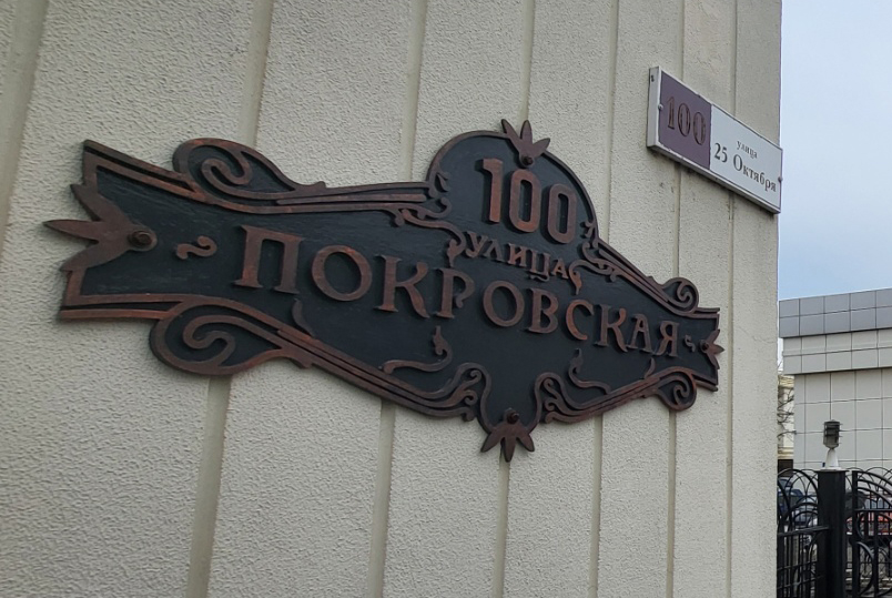Первая табличка с указанием улицы Покровской появилась в городе. Она установлена на здании министерства экономического развития.