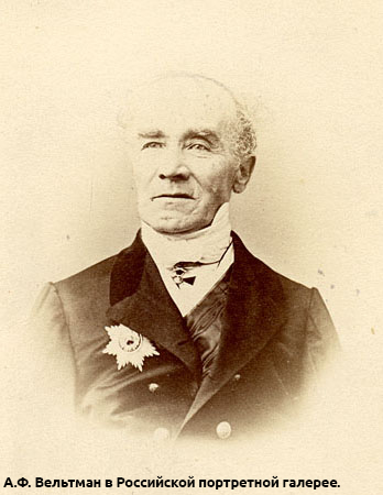 За картографические работы в Бессарабии ученому императором Николаем I пожалован перстень с бриллиантом. Позже уже во время русско-турецкой войны 1828-29 годов Александр Фомич отличился при форсировании Дуная, за что был награжден орденом святого Владимира IV степени. Во время осады крепости Шумла выполнил особое задание. Затем в его боевой биографии были сражения при Кадикиой, Силистрией, на реке Кулевчи. Немалую роль в том, что Александр Вельтман после оставления военной службы увлекся литературной деятельностью, этнографией, а в последующем историей и археологией, сыграло его знакомство с Александром Пушкиным и Владимиром Далем. О кишиневском периоде Пушкина он достаточно полно рассказал в «Воспоминаниях о Бессарабии». Труд так и начинается: «Очерк этой страны будет рамой, в которую я вставлю воспоминания о Пушкине». Мемуары Вельтмана являются очень ценным материалом для пушкиноведов. Сама же «рама» – наинтереснейший источник для историков и краеведов. Еще первый издатель воспоминаний Александра Фомича о так полюбившемся ему крае (уже после его смерти в 1870 году), замечательный исследователь истории русской литературы, сын знаменитого исторического живописца Николая Аполлоновича Майкова Леонид Николаевич писал: «Дело в том, что, вставляя рассказы о Пушкине в очерк о Бессарабии, Вельтман имел в виду выяснить то влияние, которое оказали на поэта и самый край, и условия тамошней жизни; в своей статье Вельтман, кроме прямых сведений о Пушкине, дает прекрасное изображение бессарабской nрироды, сообщает много занимательных подробностей о разнообразном составе и быте местного населения». Был он знаком и с будущим узником Тираспольской крепости Владимиром Раевским. Во время пребывания на Херсонщине и в Бессарабии тесно общался с членами «Южного тайного общества» и запросто мог повторить судьбу местных декабристов, но в восстании не участвовал, ибо занимался в это время обустройством пограничных укреплений по Пруту. За это получил свой первый орден святой Анны III степени. За боевые и гражданские заслуги Александр Фомич награжден двумя «Владимирами», столькими же «Аннами», включая и высшую степень, и «Станиславами». Об этом человеке можно еще много рассказать. Сегодня он, увы, незаслуженно забыт. Знают о его заслугах только специалисты в тех или иных областях науки да энтузиасты-историки. Хотя, как уже мы говорили выше, его сочинения – великолепный материал для всех увлекающихся историей нашего края.