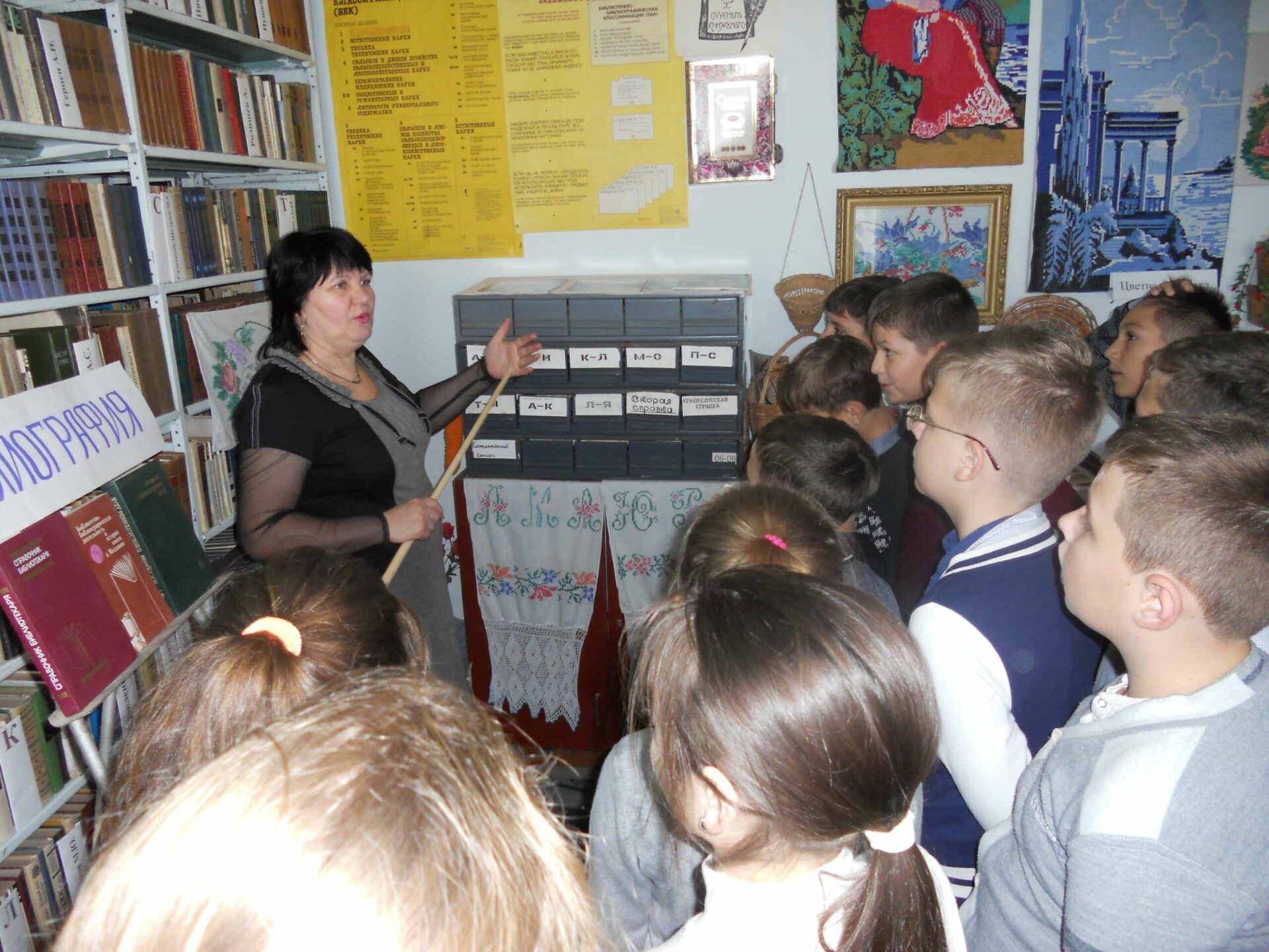 Учащимся среднего и старшего школьного возраста адресованы библиотечные уроки, способствующие практическому использованию знаний: «Путешествие в мир каталогов и картотек» (учит читателей правильно пользоваться каталогами), «Листая памяти страницы», где рассказывается о появлении на Руси первой печатной книги.