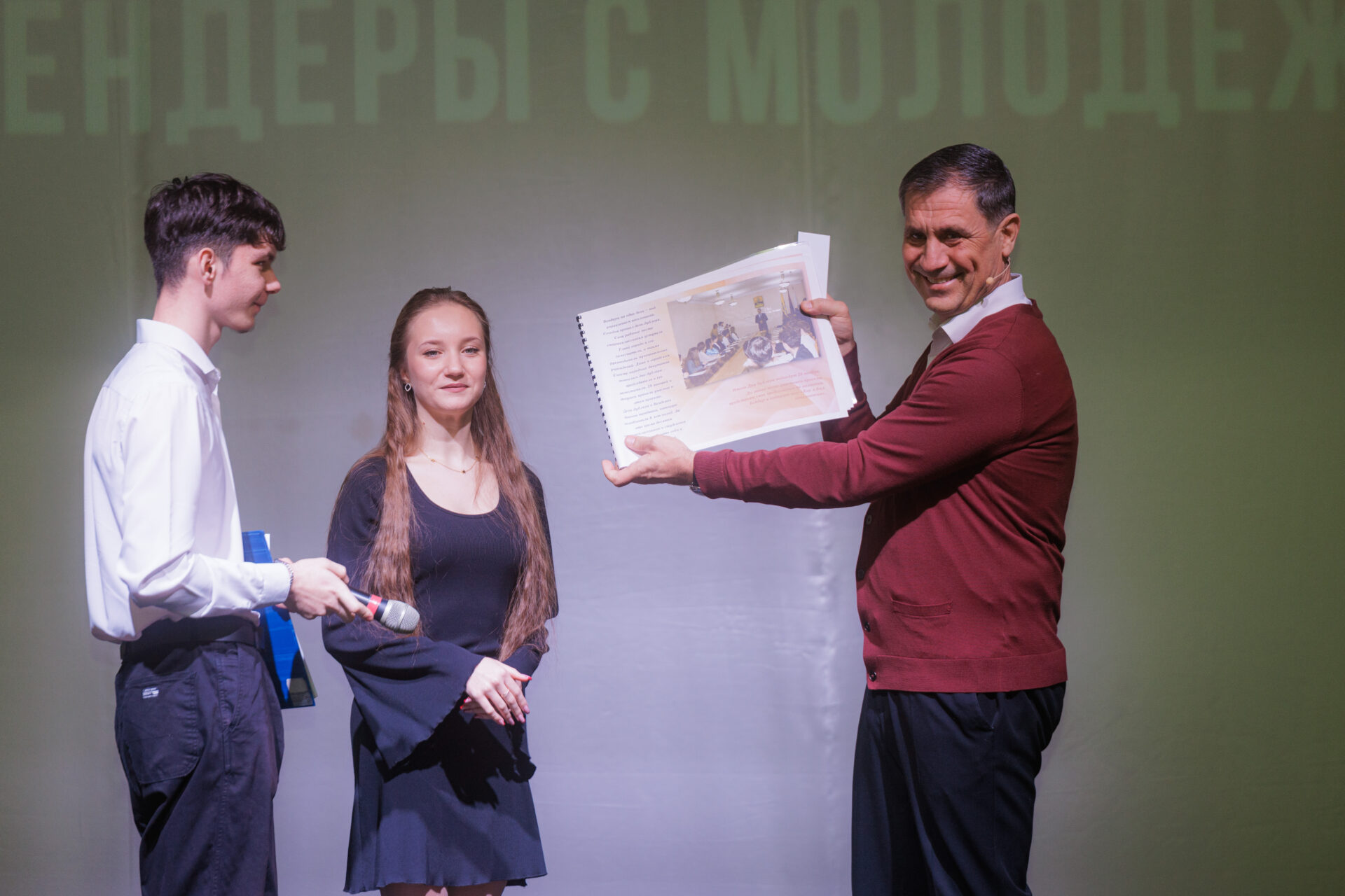 Все дальнейшие вопросы сводились к одному: как сделать город современнее, лучше, чище, привлекательнее, удобнее для проживания. Ребята говорили и о людях с ограниченными возможностями, создании для них комфортной жизненной среды, и о строительстве спортивных площадок и кортов, и о возможности проходить производственную практику и даже об усилении контроля за выполнением своих обязанностей сотрудниками ЖКХ… Под занавес встречи в качестве подарка самым активным глава вручил книги о личностном развитии и полезных жизненных навыках. Завершился вечер выступлением молодёжного танцевального коллектива «Экшн». Но и после мероприятия общение с главой продолжилось в фойе Дворца культуры.
