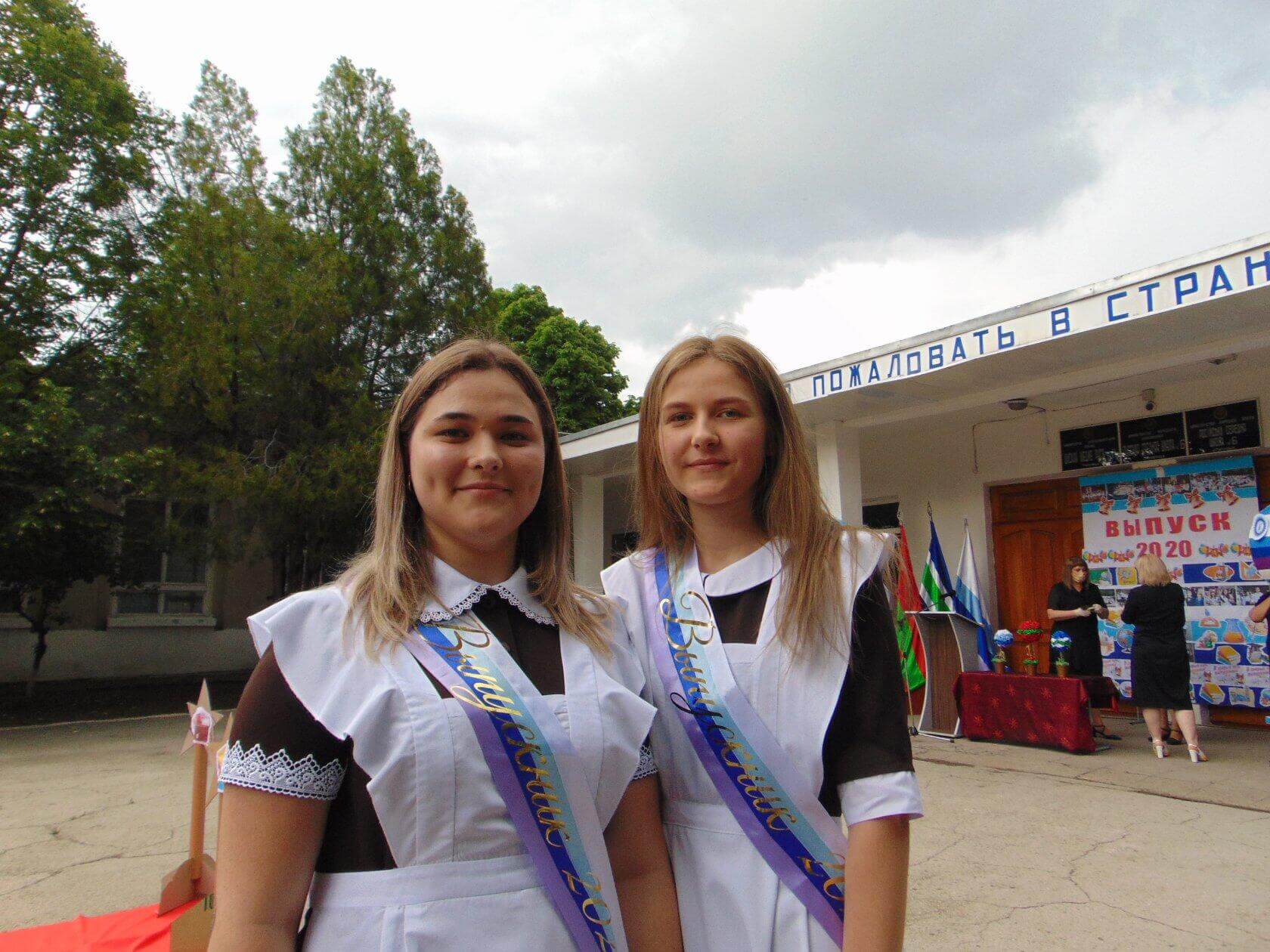 На фото: Золотые медалистки Юлия Зама и Анастасия Овсянникова перед вручением аттестатов.