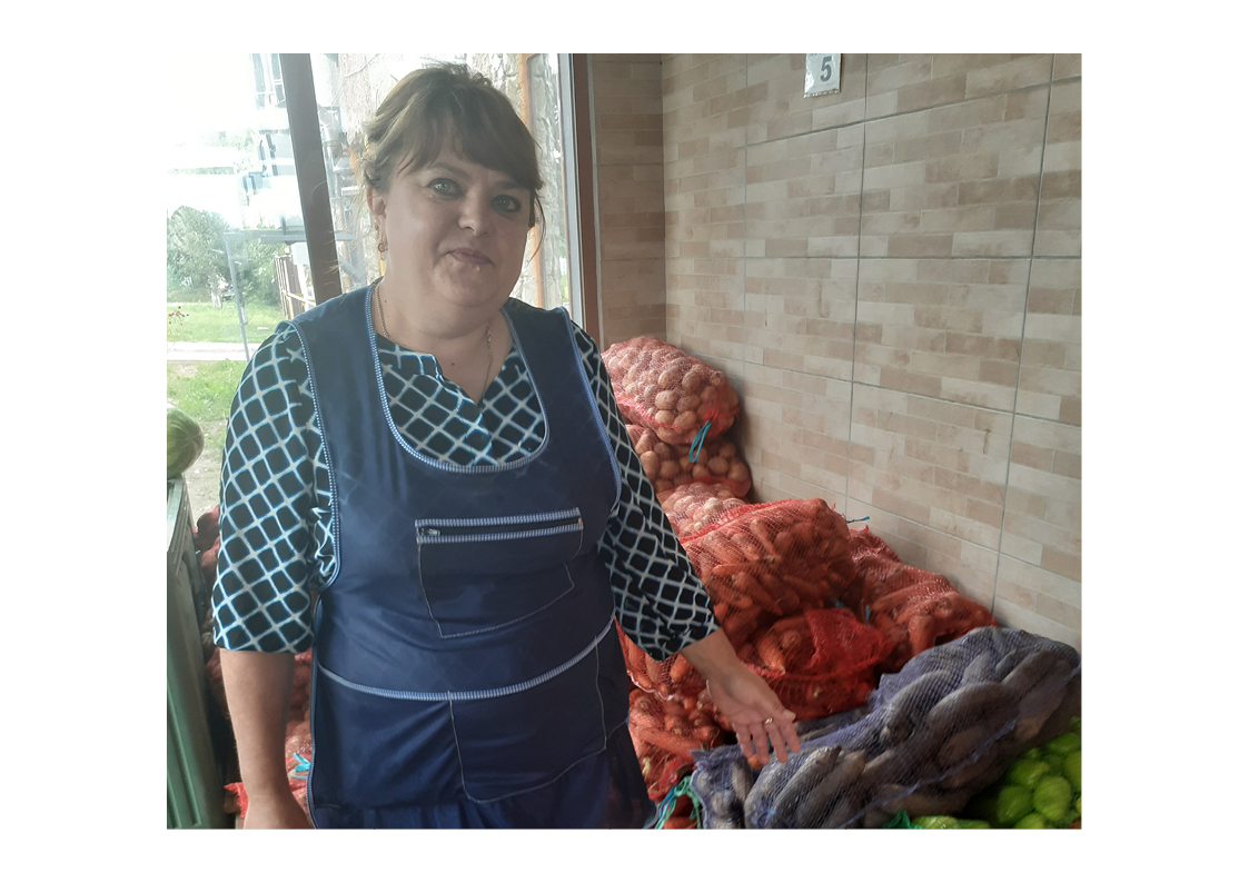 Людмила Юрьевна Фролова приехала в магазин сделать основательные закупки. Приобрела по мешку картофеля и лука и другие овощи, двадцать литров томатного сока.