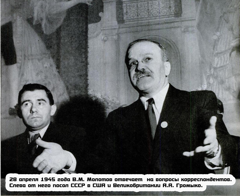 В майские дни 1945 года в Сан-Франциско проходила международная конференция, в которой принимал участие нарком иностранных дел СССР Вячеслав Молотов. Его выступление на пресс-конференции за два дня до 9 мая в День Победы опубликовали все центральные газеты, именно в День Победы. Глава НКИД СССР заявил, в частности, что Советский Союз всегда придавал первостепенное значение принципам равноправия и самоопределению народов. Вячеслав Молотов подчеркнул, что межгосударственные договоры стран-победителей с державами поверженной «оси» должны исполняться. «Нетрудно понять, что указание на необходимость пересмотра вышеуказанных договоров было бы на руку вражеским странам, которым, конечно, уже хотелось бы расшатать эти договоры и расшатать их силу», – заявил Молотов в Сан-Франциско. То же самое глава советского внешнеполитического ведомства сказал и о договорах, заключённых в предвоенное и военное время между странами – членами антигитлеровской коалиции. Руководитель НКИД СССР также заявил, что Совет безопасности должен работать в тех же рамках и иметь такие же полномочия, как при создании ООН. А вот пятый пункт заявления Вячеслава Молотова в Сан-Франциско в присутствии более чем 600 журналистов нашим союзникам не понравился. От слова «откровенно»… «Только в последние дни появились предложения по территориальной опеке, которые теперь широко освещаются в печати. Американские и английские предложения по этому вопросу различны и требуют изучения. Для советской делегации ясно, что с точки зрения международной безопасности мы должны прежде всего заботиться о том, чтобы зависимые страны поскорее могли выйти на дорогу национальной независимости. Этому должна помочь специальная организация Объединённых наций (так в тексте официального заявления. – Прим. ред.), которая должна действовать в духе осуществления признанного равноправия и самоопределения народов. Советская делегация примет активное участие в рассмотрении этого вопроса», – цитировали Вячеслава Молотова центральные газеты. Чуть ниже речи Вячеслава Молотова в Сан-Франциско «Правда» опубликовала небольшую заметку, что министр иностранных дел Норвегии Ли покинул конференцию в связи с необходимостью решения неотложных дел «по возрождению родины после нацистской оккупации».