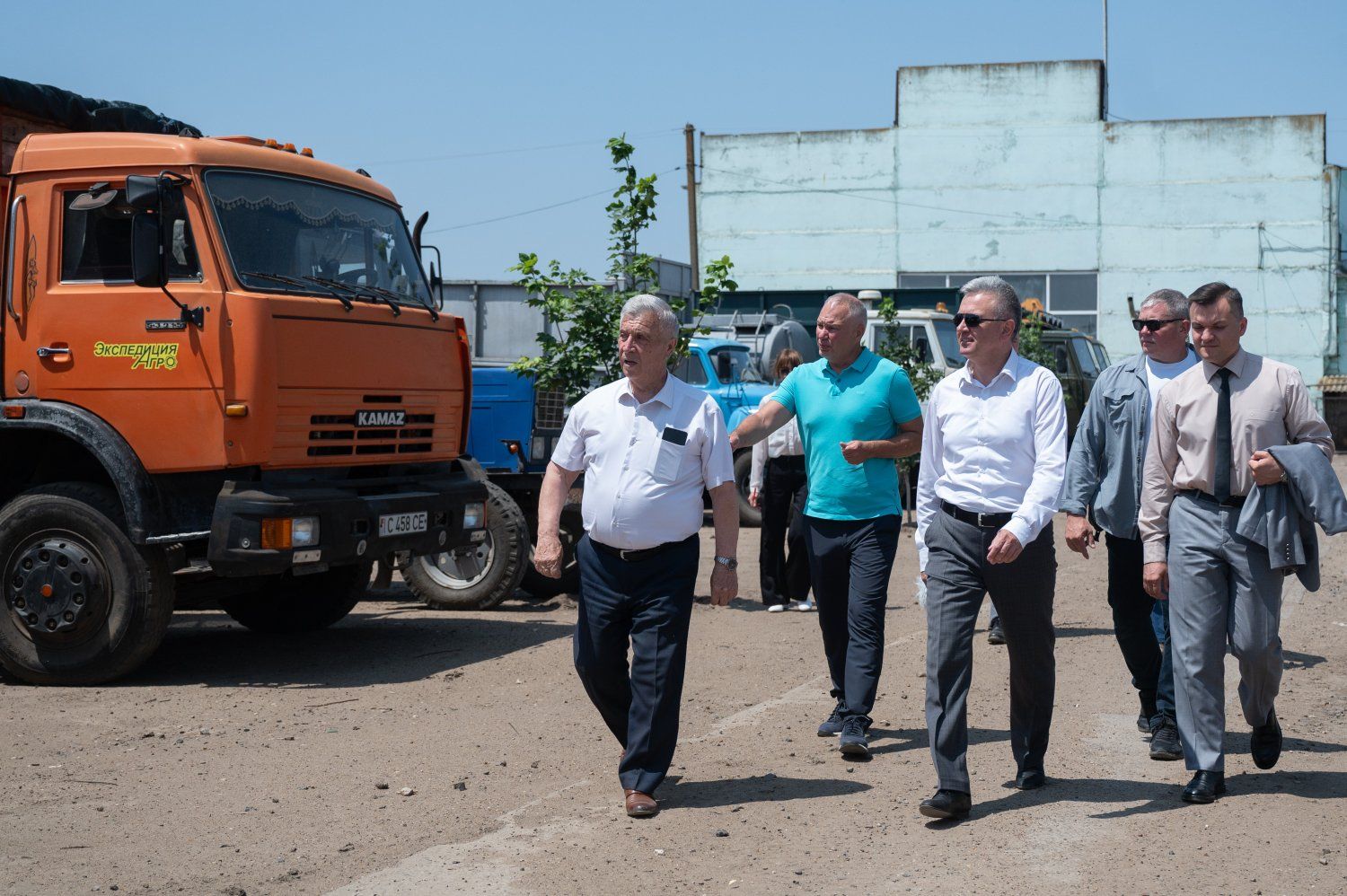 В ходе визита Вадим Красносельский посетил агропромышленное предприятие «Экспедиция-Агро». Президента встречали директор агрофирмы Игорь Добрань, управляющий полевым станом Андрей Садковский и члены рабочего коллектива. Рассказали, что предприятие создано в 2006 году. Площадь пашенных земель на сегодняшний день без малого 3,5 тысячи гектаров, на которых выращивают зерновые, технические культуры и овощи на переработку. Заморозка уходит на экспорт, консервы пользуются спросом на внутреннем рынке. Высокие урожаи достигаются благодаря гармоничному севообороту и орошению. Почвозащитная система основана на сохранении биологически активного слоя и влаги. Используется технология no-till – отказ от традиционного вспахивания земли. Почва аккумулирует пожнивные остатки, которые благодаря деятельности микроорганизмов минерализуются и увеличивают органическую массу, повышая её плодородие. Особое внимание уделяют качеству воды для орошения. Её очищают с помощью установки обратного осмоса. Вадим Красносельский осмотрел и автопарк предприятия. Сельхозтехника современная и разнообразная. Много специализированных агрегатов. Есть, к примеру, комбайны, предназначенные для вычёсывающей (а не стригущей) жатвы, рассказал руководитель тракторной бригады Андрей Садковский. Президент спрашивал о коллективе. Руководство уверяет, что команда – особая гордость предприятия. Удалось собрать профессиональную, прогрессивную, увлечённую делом молодёжь.