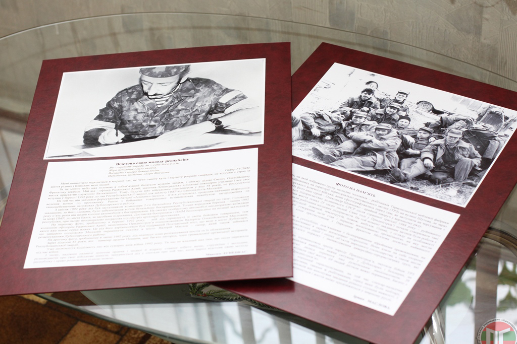 В офисе организации представлено около семидесяти работ. Это планшеты, на которых размещены фотографии и небольшие зарисовки о защитниках, ранее публиковавшиеся на страницах трех республиканских газет на русском, молдавском и украинском языках.