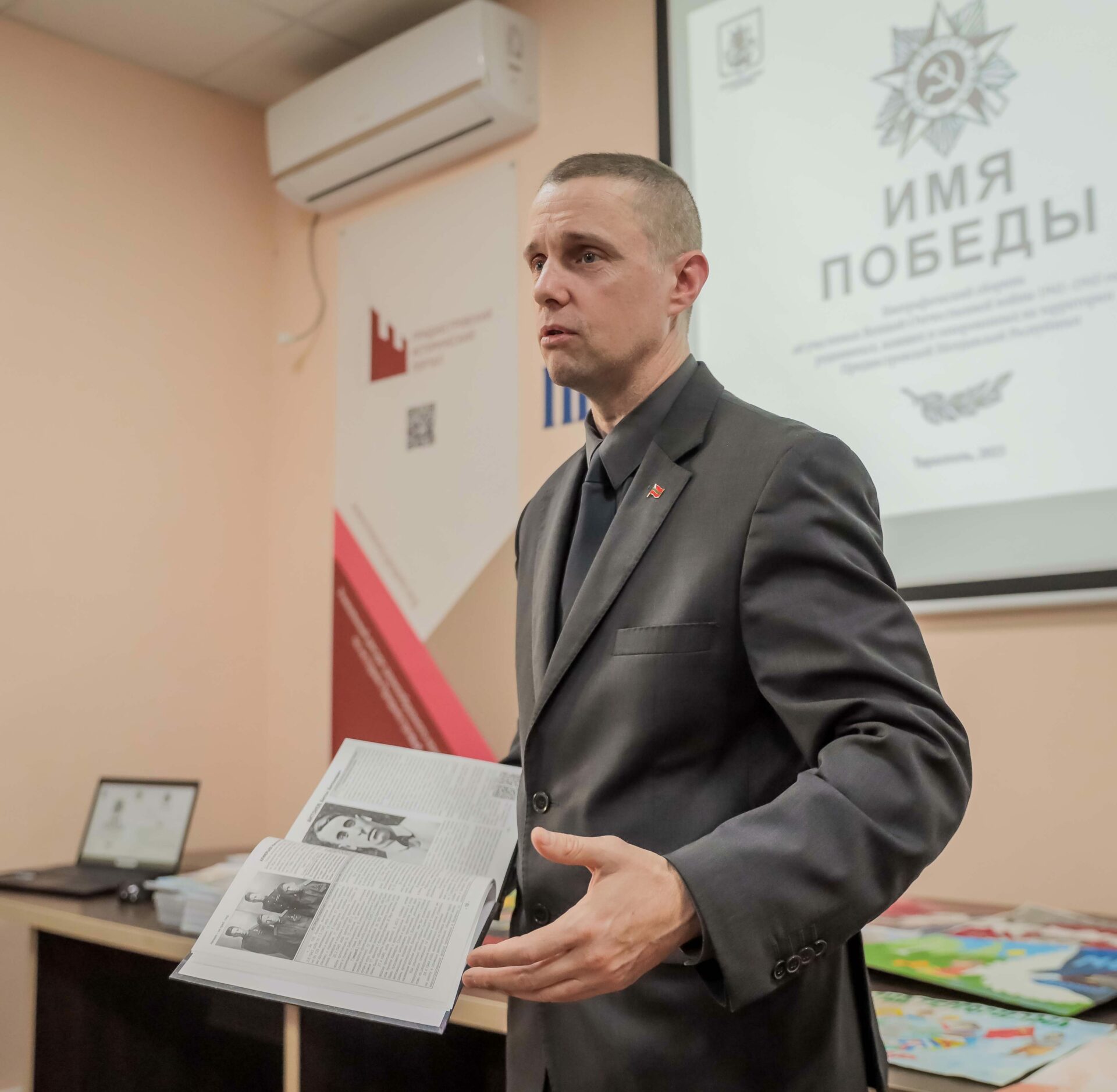 В ходе мероприятия будущим журналистам также презентовали книгу «Имя Победы». От имени коллектива составителей выступил начальник отдела по работе с общественными объединениями Администрации Президента Александр Березовский. Он сообщил, что в основе книги – биографии участников Великой Отечественной войны, имеющих отношение к территории современного Приднестровья. В ней собраны также уникальные фотографии, выдержки из наградных листов и мемуаров. По словам Александра Березовского, целью издания является сохранение памяти о советских воинах, которые всегда будут оставаться для наследников образцом мужества и патриотизма.