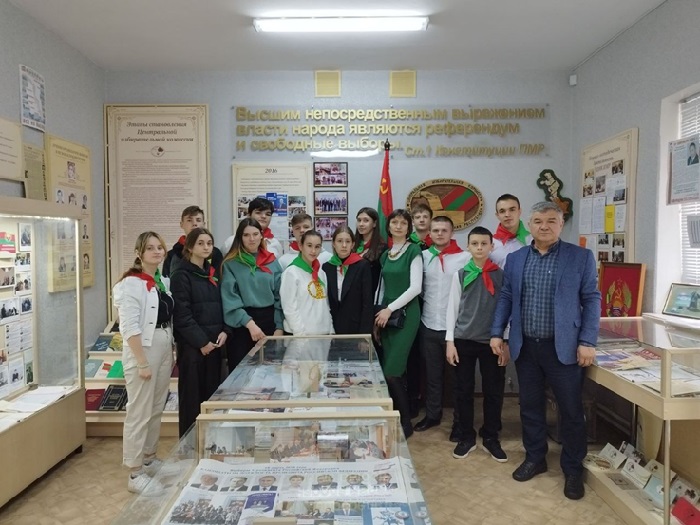 В ходе реализации программы экскурсионных мероприятий, в преддверии Дня молодого избирателя, который отмечают в Приднестровье 16 апреля, юнармейцы посетили музей истории выборов и референдумов Центральной избирательной комиссии ПМР. Экскурсию в музее провел Денис Радченко, главный специалист отдела по связям с избирателями и общественностью ЦИК ПМР. Ребятам предоставили возможность ознакомиться с документами, литературой, избирательными бюллетенями, фотографиями, агитационными материалами кандидатов, архивными экземплярами Конституции ПМР, Избирательного кодекса. Ребята задавали экскурсоводу интересующие их вопросы, фотографировали понравившиеся экспонаты музея на память.