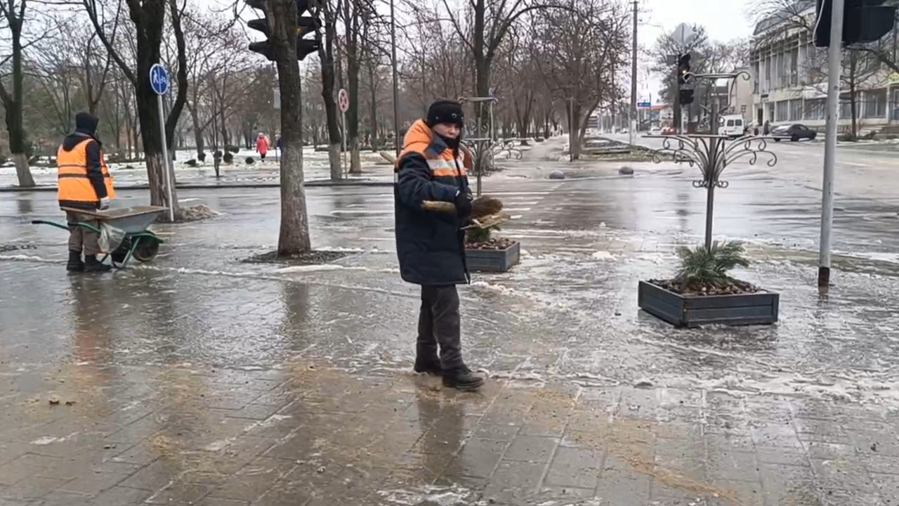 Сейчас противогололёдным реагентом и песчано-солевой смесью обрабатывают только центральные улицы и участки республиканских дорог. Дворовые и второстепенные дороги, а также тротуары не обрабатывали. Ситуация осложняется осадками в виде дождя при отрицательной температуре воздуха.