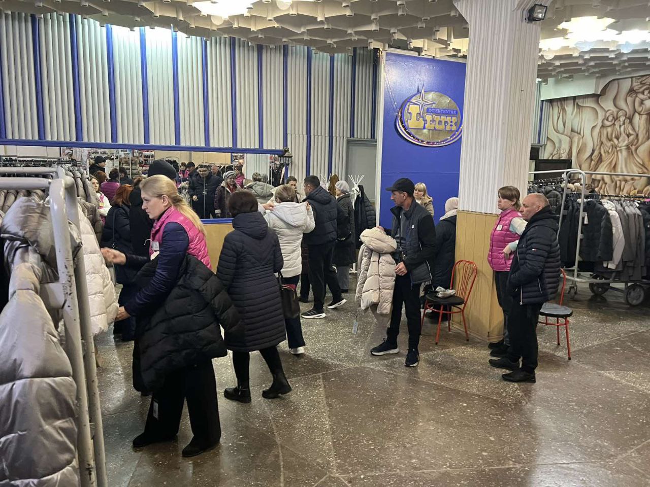 Всего представили около ста моделей зимней мужской и женской одежды в размерах от 44 до 64. Особой популярностью пользовались женские куртки светлых оттенков – они разошлись в числе первых.
