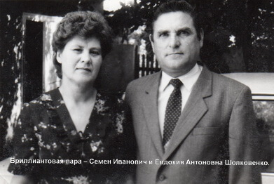 Шестидесятилетие со дня вступления в брак празднуют супруги Семен Иванович и Евдокия Антоновна Шолковенко. Самим «молодожёнам» хорошо за восемьдесят. Оба – ветераны труда. Семен Иванович около двадцати лет занимал пост председателя сельсовета, Евдокия Антоновна с 1962 года – главный врач сельского врачебного участка.