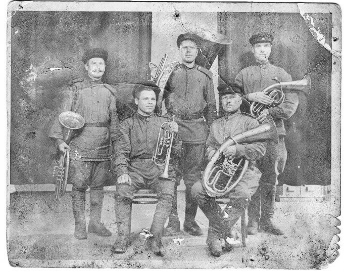 Музыканты были на селе людьми уважаемыми – не каждый ведь может одинаково хорошо и трактором управлять, и на трубе играть. На старой фотографии, которую я берегу, как зеницу ока, – послевоенный состав сельского духового оркестра. На ней – музыканты-фронтовики, которые с музыкальными инструментами прошли по дорогам войны, чтобы в самом Берлине исполнить победный марш. И одеты они в военную форму, в чём с фронта пришли – брюки-галифе, кители, фуражки, сапоги. В то время это была лучшая одежда в их гардеробе. Некоторые попали в армию, будучи музыкантами. А некоторые научились играть на музыкальных инструментах прямо на фронте. Духовые оркестры на войне помогали поддерживать боевой дух солдат, хотя нередко в боях музыканты меняли трубы и гармошки на винтовку и автомат.